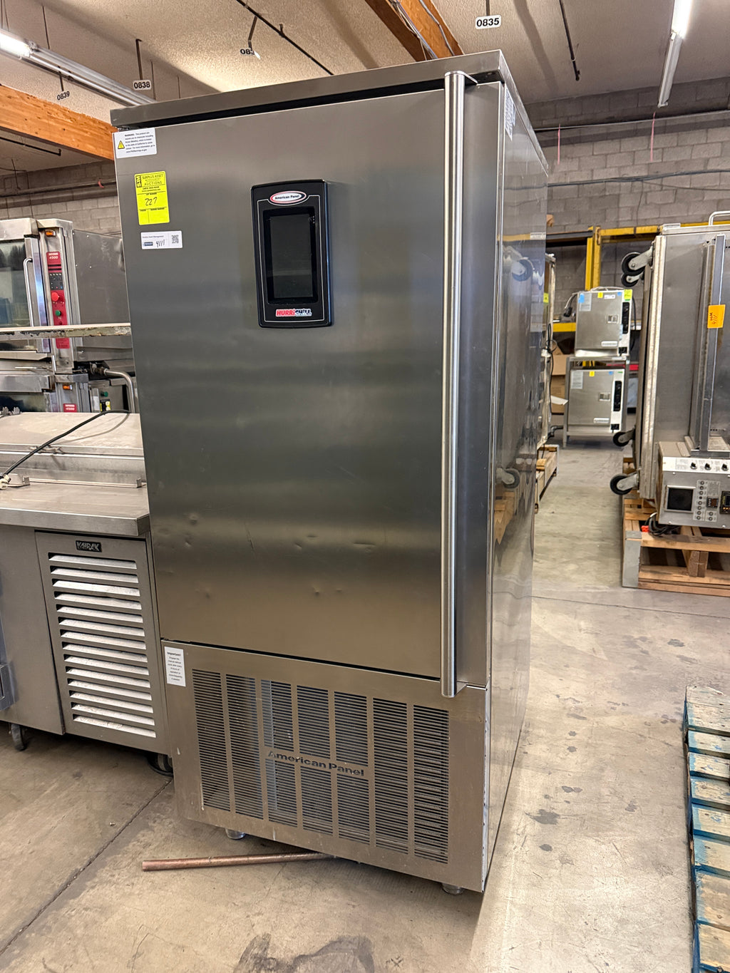 The American Panel AP12BCF110-3 HURRiCHiLL™ Blast Chiller/Shock Freezer Reach-in is a commercial-grade refrigeration unit designed for rapid cooling and freezing applications in professional kitchens. This self-contained, reach-in blast chiller features extensive technical specifications including a capacity to hold (24) 12" x 20" x 2.5" or (12) 18" x 26" pans, with a maximum blast chill capacity of 160°F to 38°F in 90 minutes, and a freeze capacity reaching 0°F from 160°F within 240 minutes. It integrates a 7" LCD touch screen controller with Quick Start & A La Carte functions, alongside a heated food probe for precise temperature management. Constructed with stainless steel interior and exterior components, it provides durability suitable for high-demand foodservice environments. The unit operates with a 3 HP refrigeration system, ensuring efficient temperature control, and features a compact reach-in footprint with stainless steel legs for elevation and stability.
