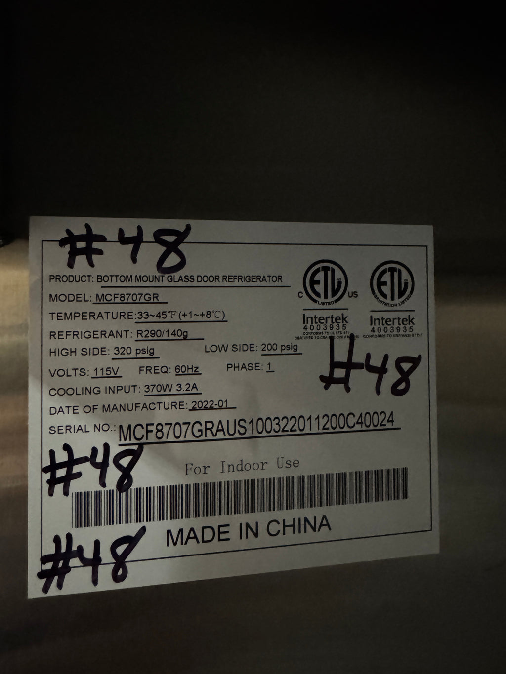 Refrigerant: R290